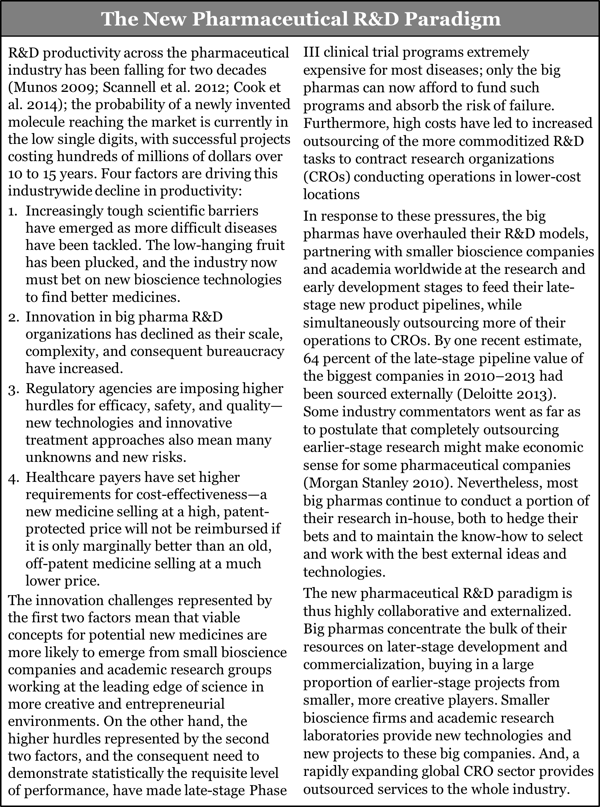 There remained the important question of Orion’s future R&D business model in the context of a shift in the pharmaceutical R&D paradigm (see “The New Pharmaceutical R&D Paradigm,” below). As a smaller company, Orion was caught in a difficult position: It lacked the new technologies and ideas being generated in academia and startup bioscience firms. But, in the words of one R&D executive, “We can’t afford, like the big pharmas, to buy these in and fund the resulting projects all the way to market; the cost of doing so and the low single-digit success rates just do not make sense for a company our size.”