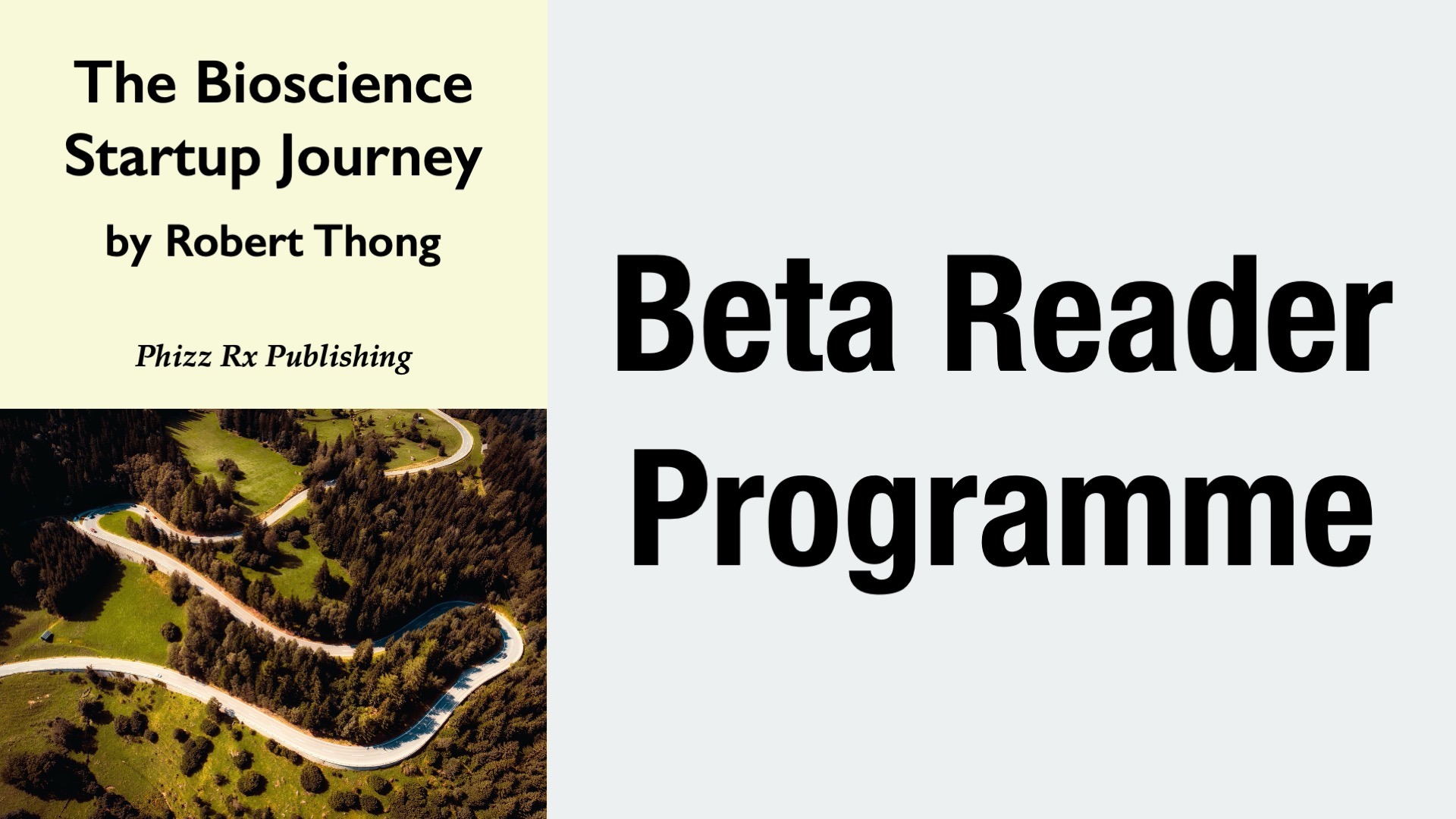 Announcing the Beta Reader Programme for my forthcoming book, The Bioscience Startup Journey. I’m practising what I preach by seeking early adopter feedback so that I can deliver a much better final product. You can join the Beta Reader Programme by clicking one of the two buttons on this page. Please read below how the programme works before you sign up.